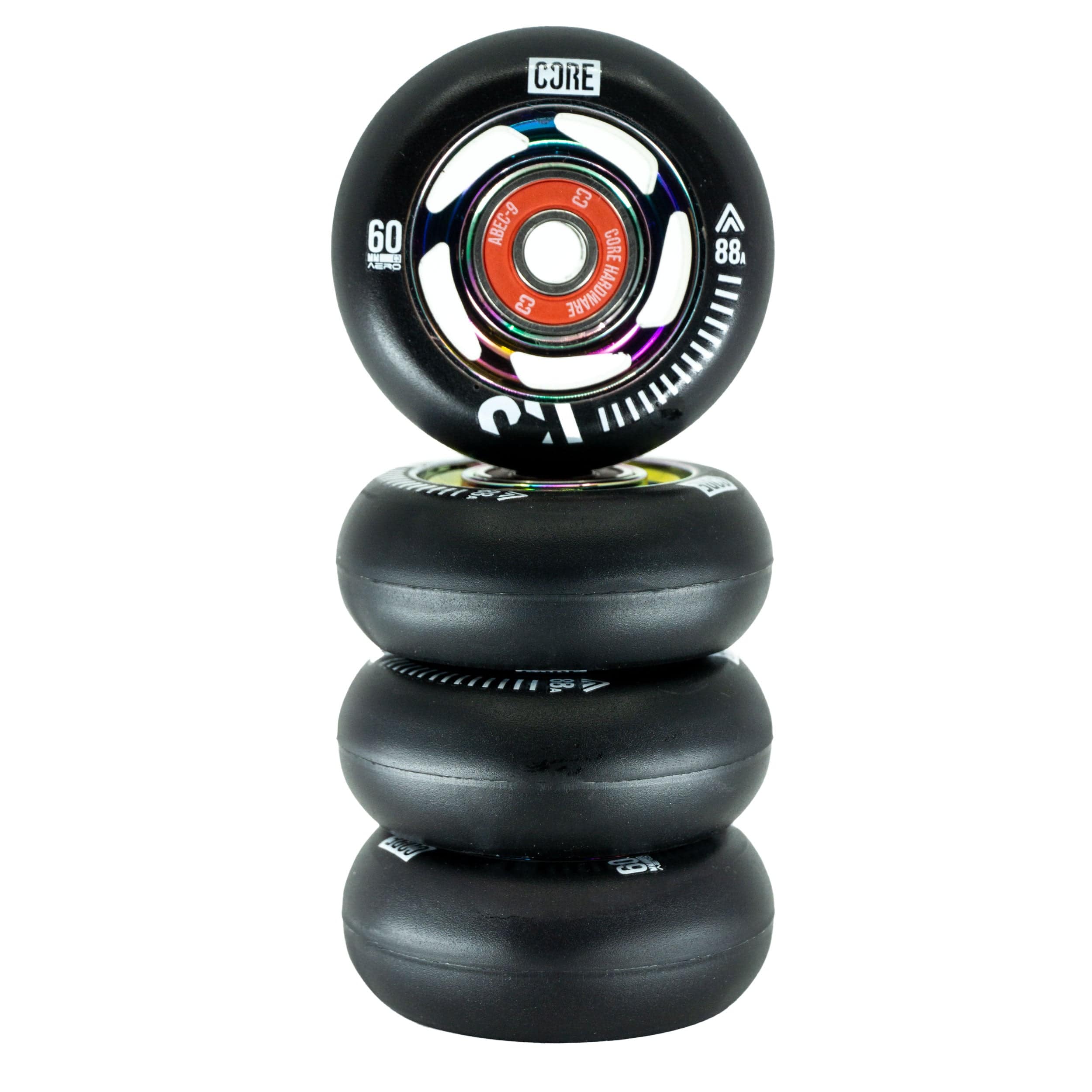 CORE Aero Inline Skate Wheels 60mm - NeoChrome (4 pack + Bearings) I Skate Wheels