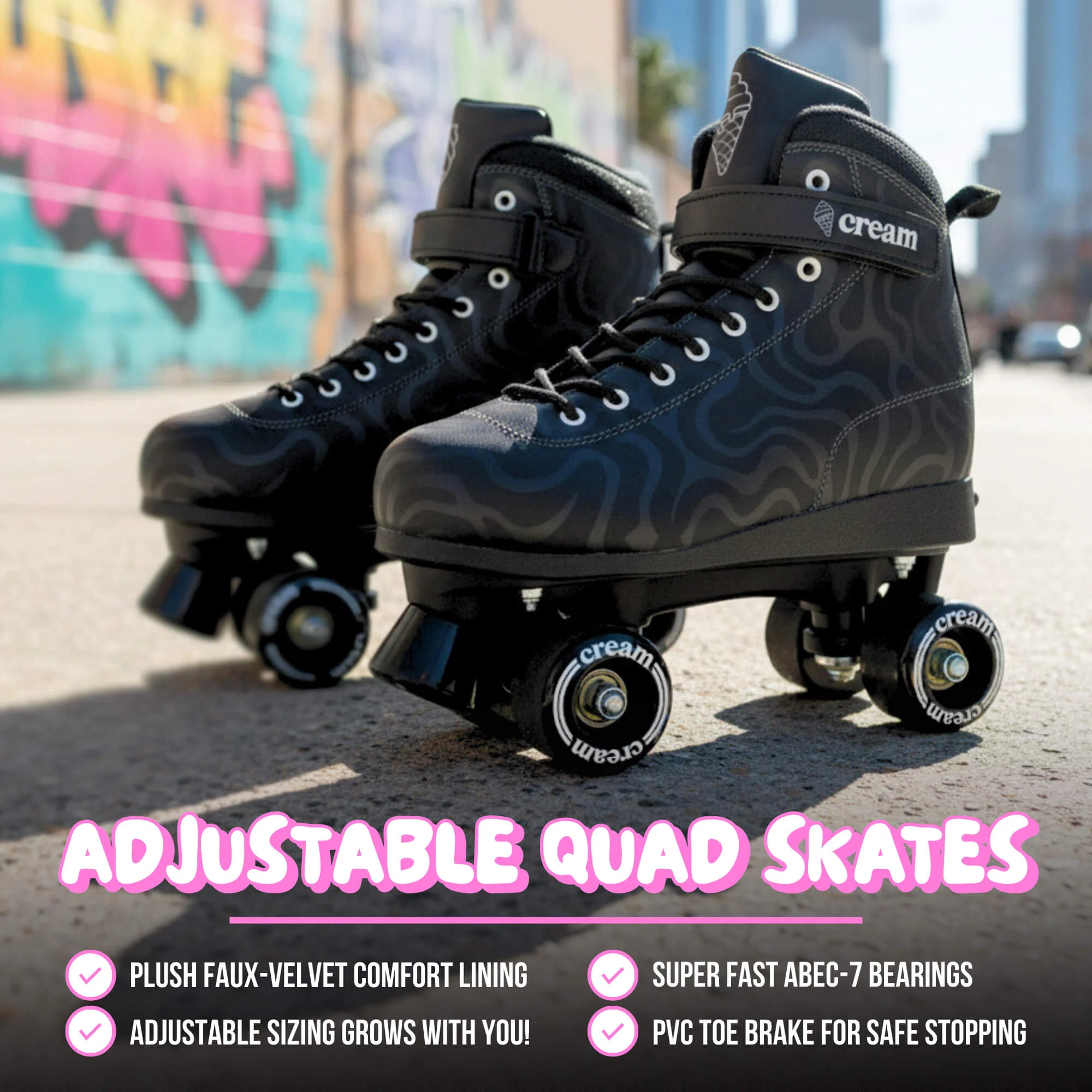 CREAM Scoop Quad Roller Skates, Adjustable - Wave, Black