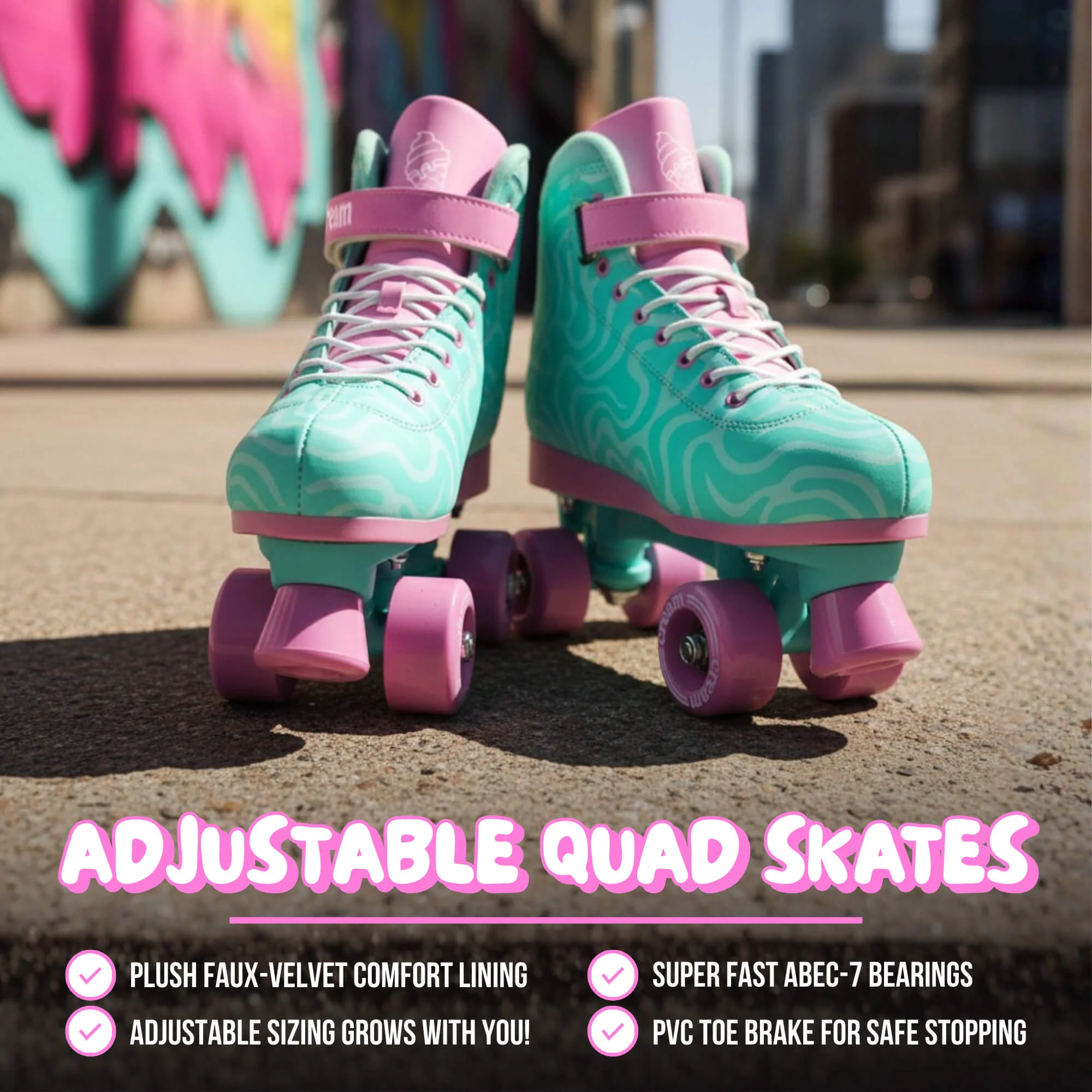 Meet the CREAM Scoop Adjustable Quad Roller Skates 🍦🛼 where fashion meets function. Perfect for beginners and casual riders who want a mix of fashion, function and fun.